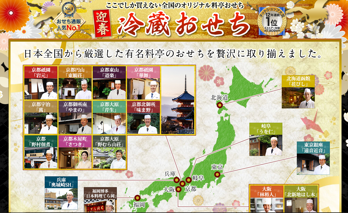 1、京都中心に有名料亭のおせちが厳選されている